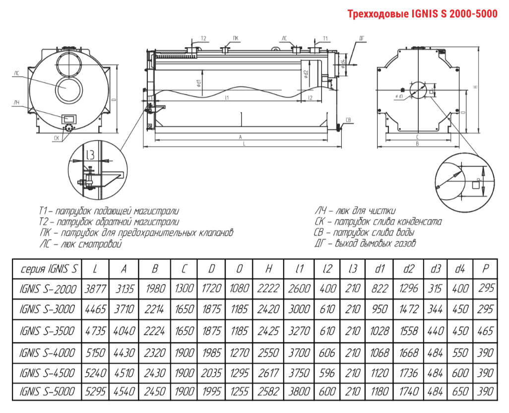 Технические характеристики водогрейного трёхходового котла ARCUS IGNIS S-4500