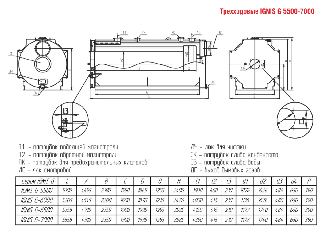 Технические характеристики водогрейного трёхходового котла ARCUS IGNIS G-6000