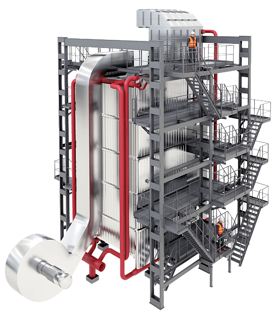 TEMRON Wmax-100 - водотрубные газовые котлы высокой мощности, оборудованные горелками,расположенными на потолке. Имеют высокие экономические и экологические характеристики.