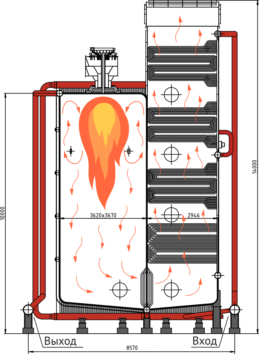 - Усиленный каркас котла для сейсмичных районов